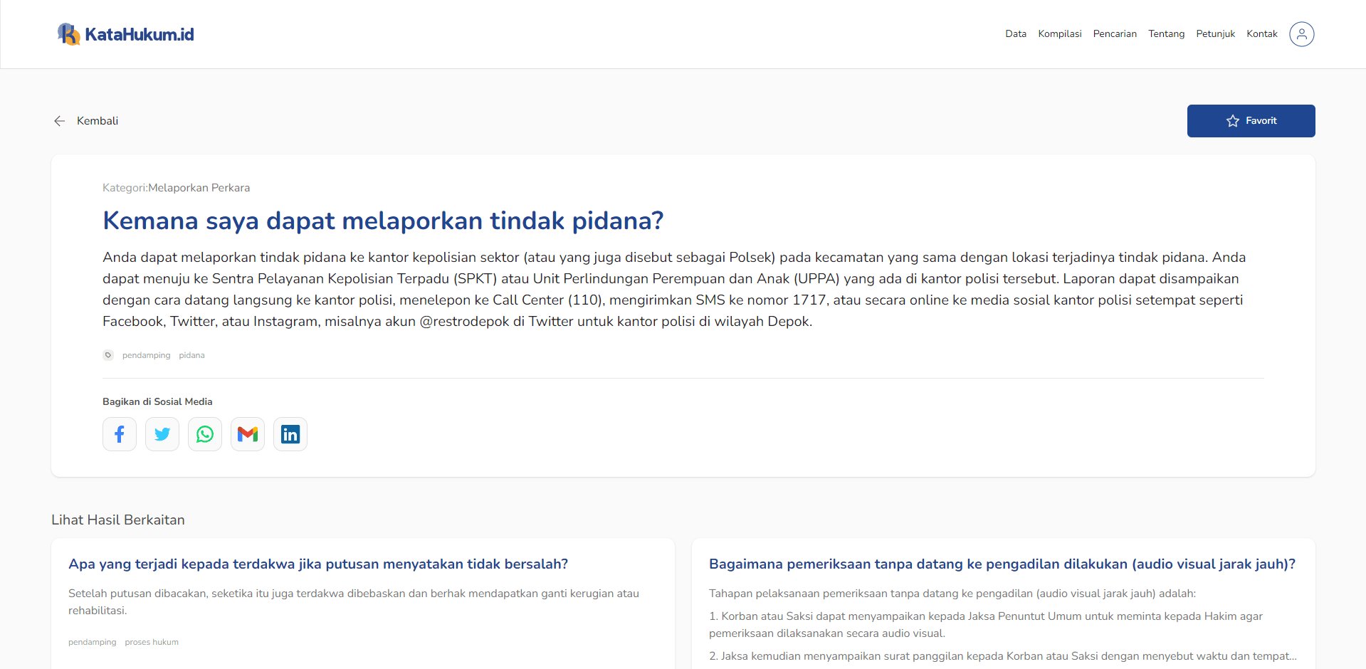Klik fitur Favorit agar QnA pilihan mu tersimpan di akun Katahukum milik mu! Untuk mendapatkan akun Katahukum, Sign in (Masuk) untuk mendaftar.