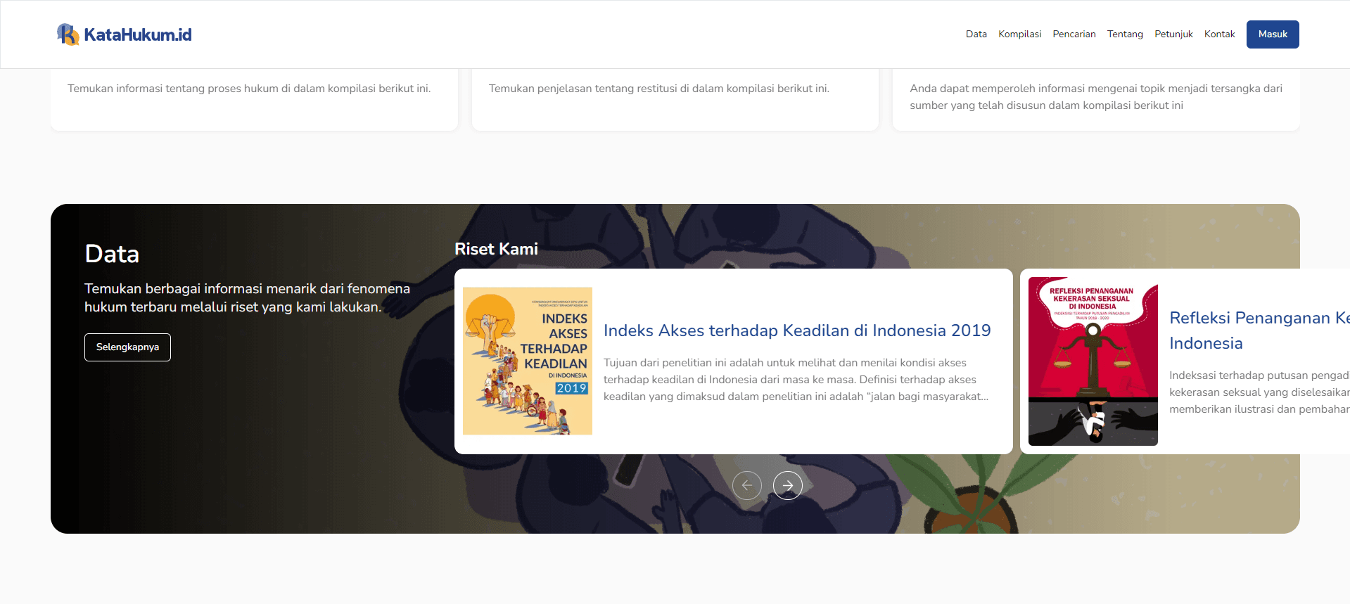 Temukan berbagai data terkini dari hasil penelitian hukum melalui fitur Data!